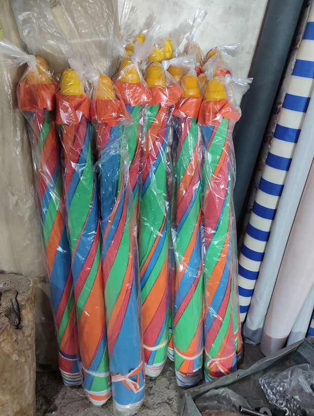 چتر و سایبان قطر ۲.۵ متری بزرگ باسایه عالی مناسب کار زیر افتاب، پای چرخ بساط،با میله چتر ضخیم جنس رویه پی وی سی کاملا ضد اب میباشد
