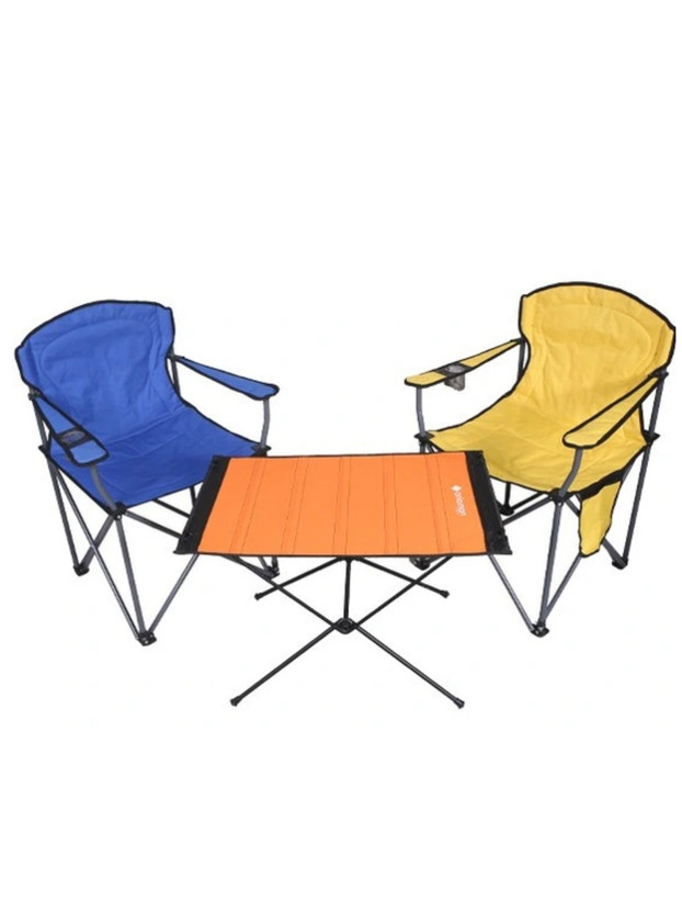به راحتی باز و بسته میشه/دارای کاور برای حمل اسانتر/ قابل شست و شوی میباشد/تحمل وزن تا 150کیلو گرم/ بهترین همراه برای طبیعت گردی قیمت درج شده برای ۲عدد صندلی و میز پارچه ای ست ۲نفره